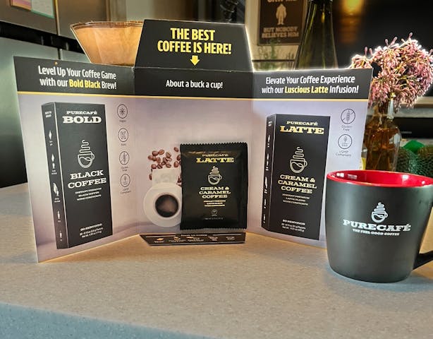 For about a buck a cup, why not unlock a moment of luxury; your sample pack supply of PureCafé is affordable making each serving save you money, and enjoy the benefits. It’s our commitment to make luxury coffee accessible every day.